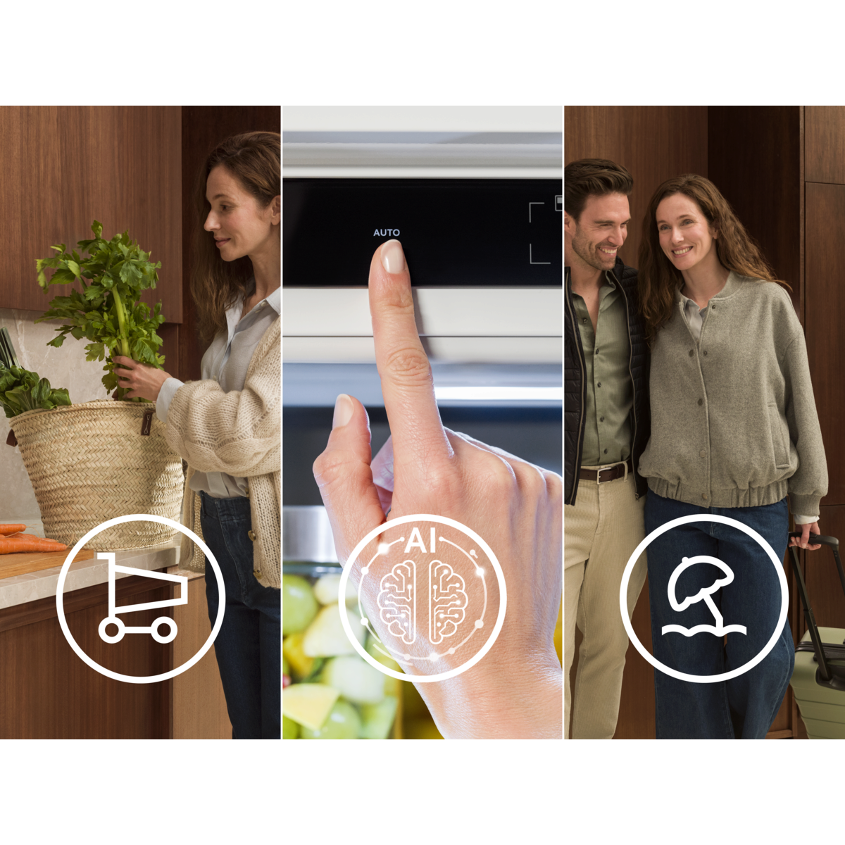 *Économies d’énergie mesurées sur 1780 CB Multichill, 1780 CB Twintech Nofrost et 1225 Freezer NoFrost avec mode vacances activé, versus réglages par défaut avec AI CoolAssist désactivé, et température externe de 25 °C. Performances énergétiques varient selon mode d’usage et température extérieure.