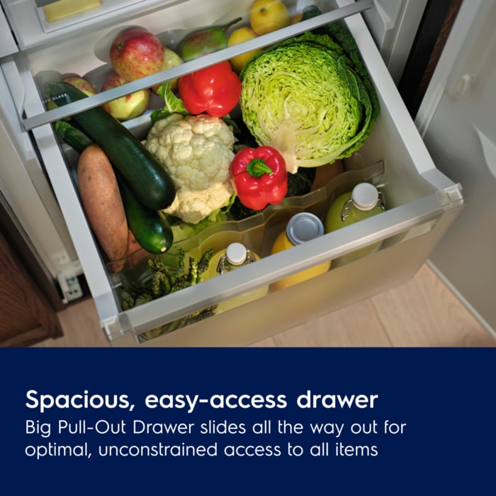 La technologie DynamicAir créée un flux d’air qui déplace l’air froid dans le réfrigérateur, afin de garder en permanence une température stable dans chaque recoin. Pour conserver les ingrédients contre les déformations ou le dessèchement.