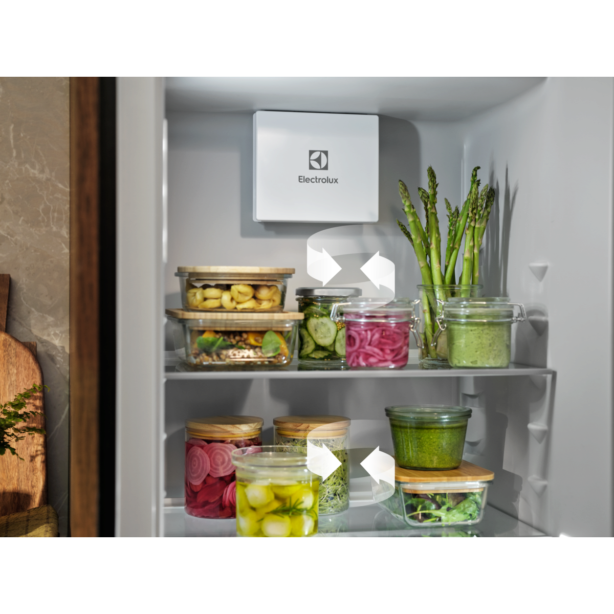La technologie DynamicAir créée un flux d’air qui déplace l’air froid dans le réfrigérateur, afin de garder en permanence une température stable dans chaque recoin. Pour conserver les ingrédients contre les déformations ou le dessèchement.